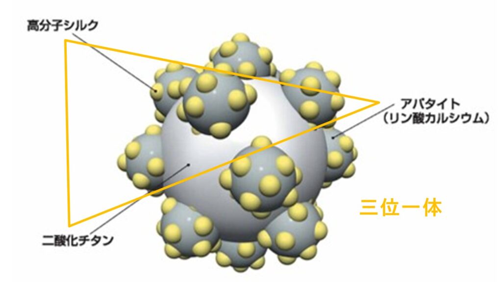 酸化チタンをアパタイトと高分子シルクで被覆し、